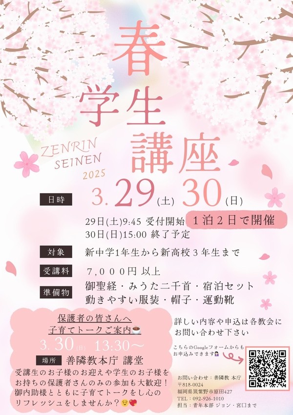 ※詳細は善隣教本庁までお問い合わせください。